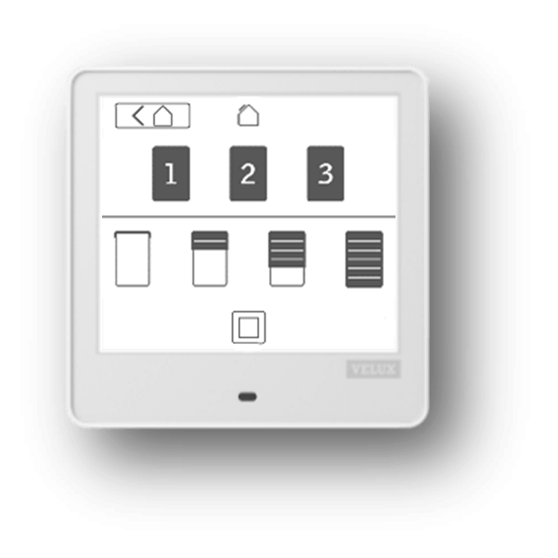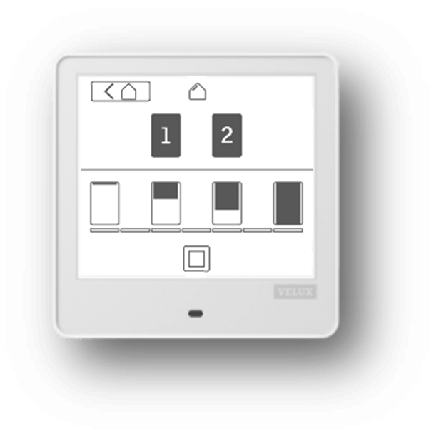 Remarque : vous pouvez également arrêter une opération de produit en cours demandée à partir d'une autre commande. Une pression sur n'importe quel bouton Stop pendant plus de 5 secondes envoie une commande d'arrêt à tous les produits contrôlés par votre VELUX Touch.